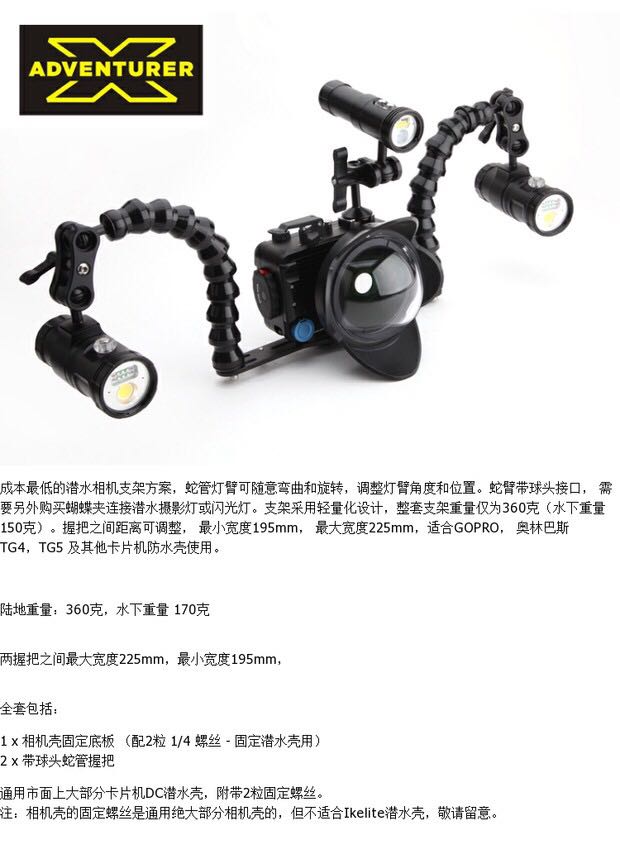 Two - ball head snake arm holds the stent TG4 TG5 camera waterproof shell anti - drop chassis tray adjustment dive photography