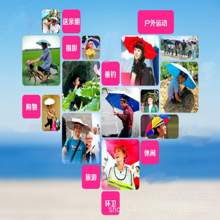 New sunny and rainy day umbrella hat double hat umbrella wearing umbrella elastic band sun protection fishing outdoor children's umbrella hat