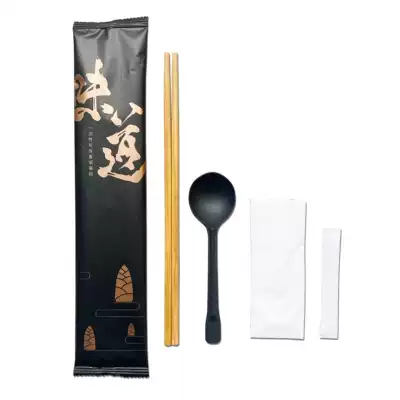 Hot pot shop disposable chopsticks extended hot pot chopsticks set with wet wipes spoon paper towel delivery packaging tableware customization