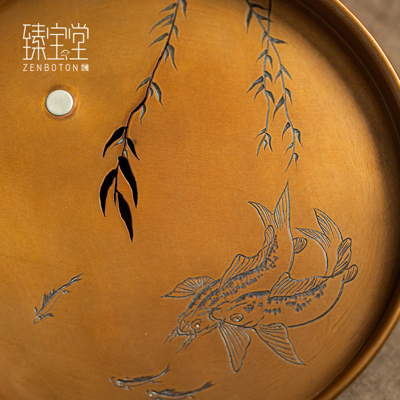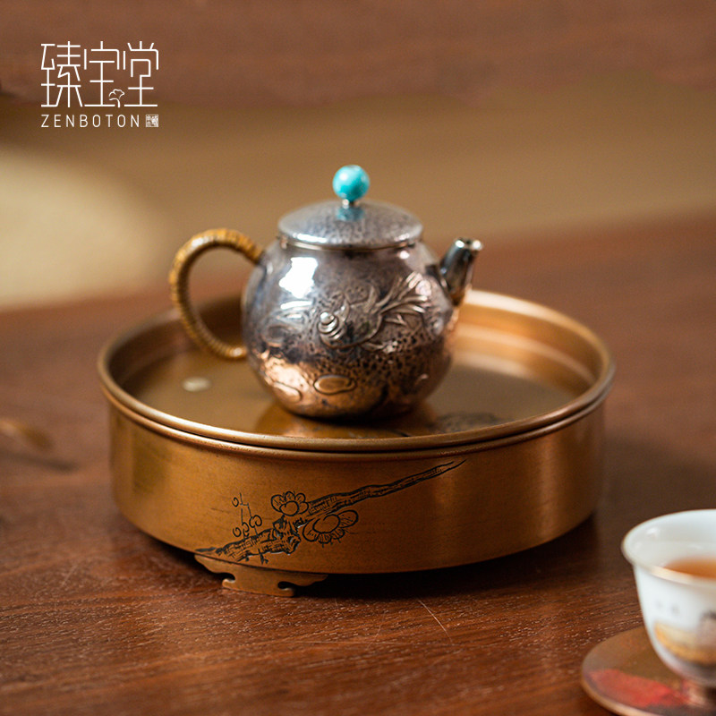 Zhenbaotang pot bearing pure copper hand-inlaid silver raising pot dry bubble table Jianshui Kung Fu tea ceremony household insulation pot holder accessories