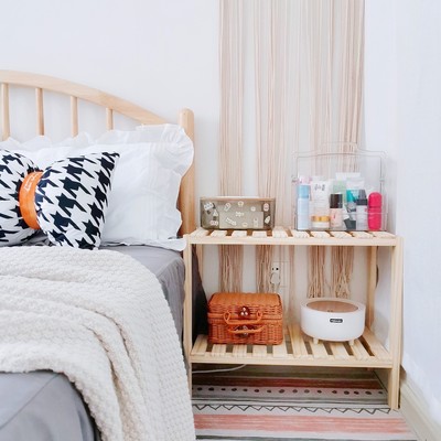 Painted Mountain Home Pavilion Ins Wind bed head cabinet Skeleton Solid Wood Shelters Rental Renovation Adolescent Girl Hearts Bedroom