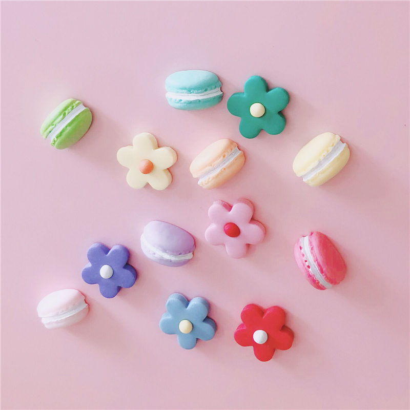 7 colors mini macarons 7 smiley cheesecake fries 6 colors transparent smiley face 7 styling biscuits 4 color stick candy 7 color retro little flowers