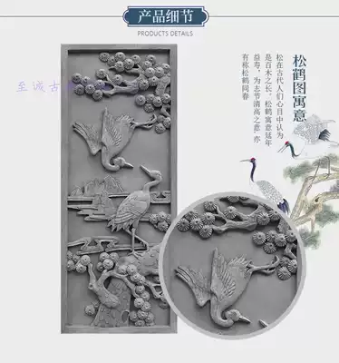 Tang Rui antique built medium-style brick carving vertical version of pine crane Yennian courtyard decoration wall decoration cement hollow window flower