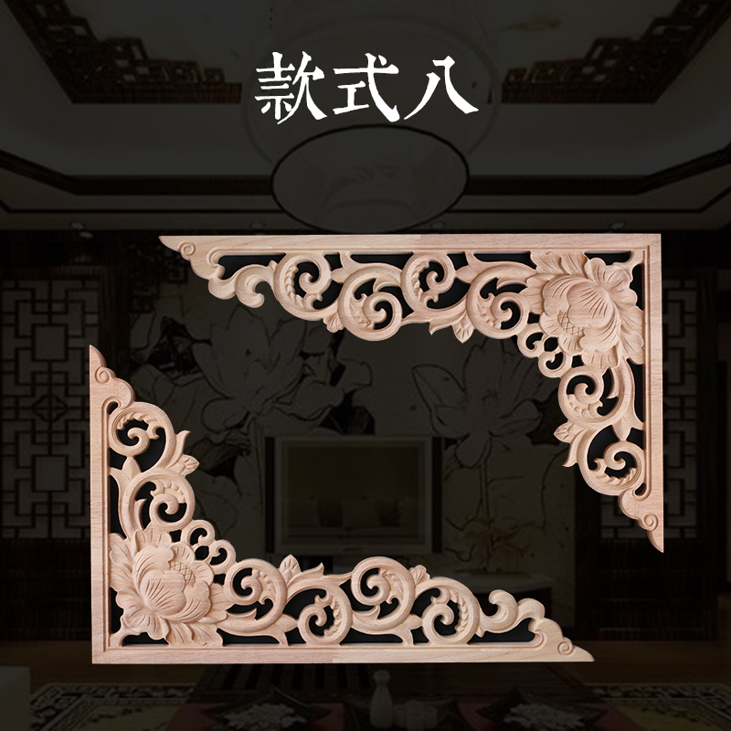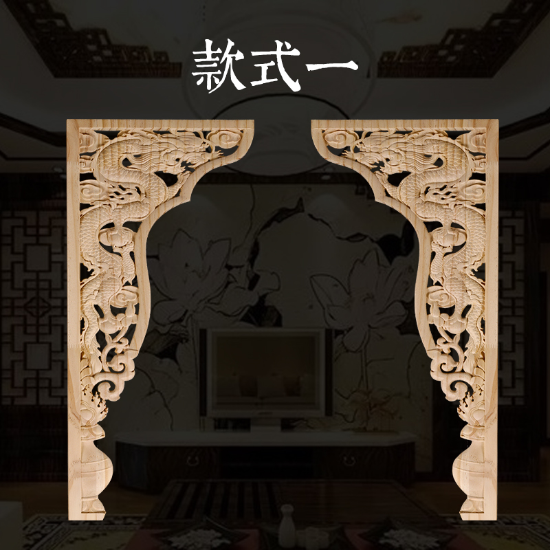 Wood carving double dragon flower piece solid wood shrine special decal European-style corner flower piece cabinet door decoration ceiling corner flower background wall