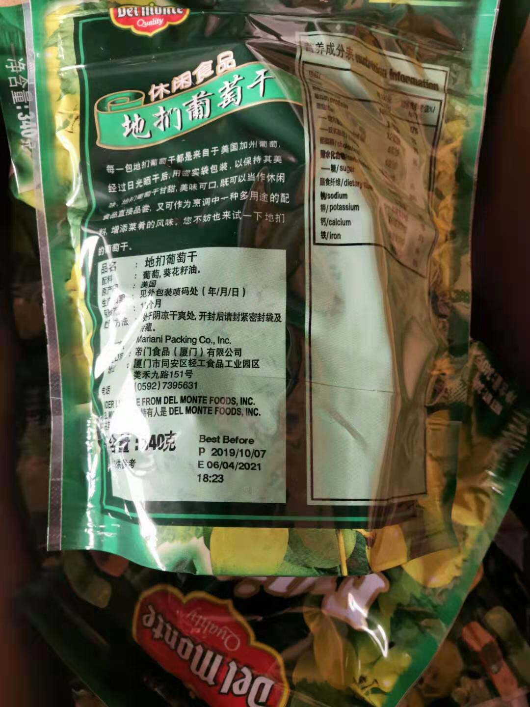 New date US imports ground grapes dry Tiganti dry 340g casual snacks baked raw material