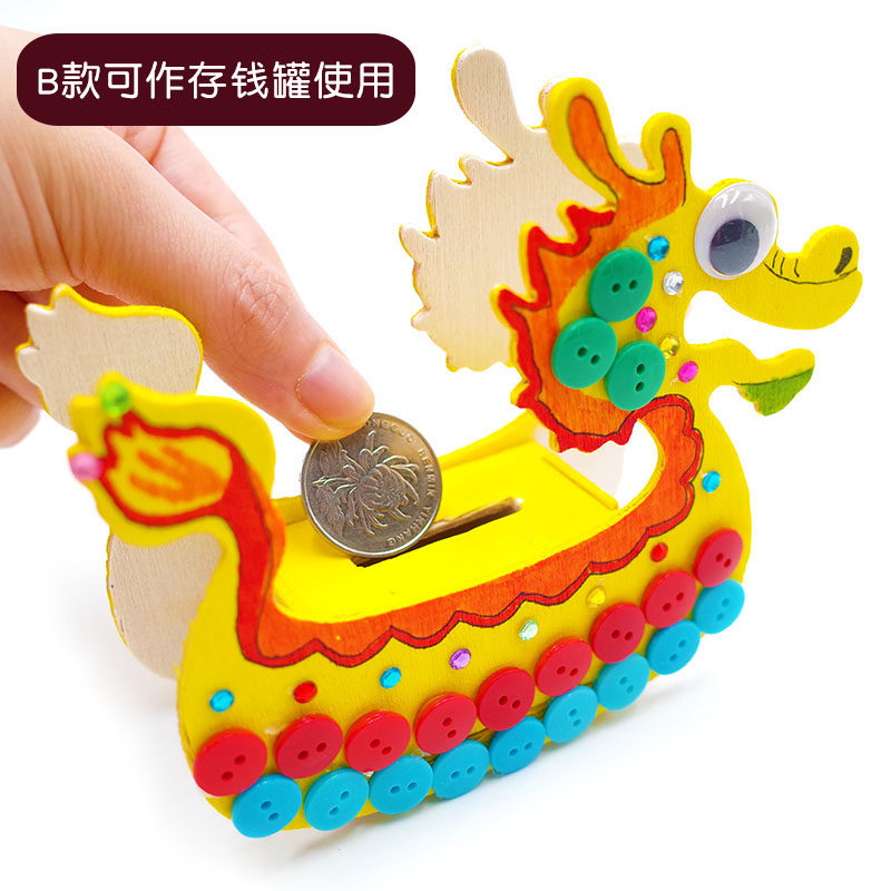 White blank wooden dragon boat Chinese dragon National Day creative diy production painted dragon boat homemade material model