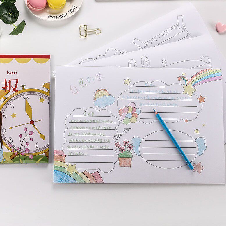 1 copy of suit A3 handwritten newspaper 1 16 pieces of suit A3 handwritten newspaper 2 copies of 32 pieces of suit A4 handwritten newspaper 1 copy of 16 pieces of suit A4 handwritten newspaper 2 copies of 32 sheets of 24-color washable watercolor pens 1 box A