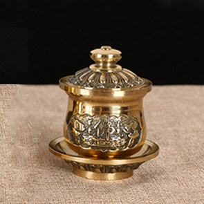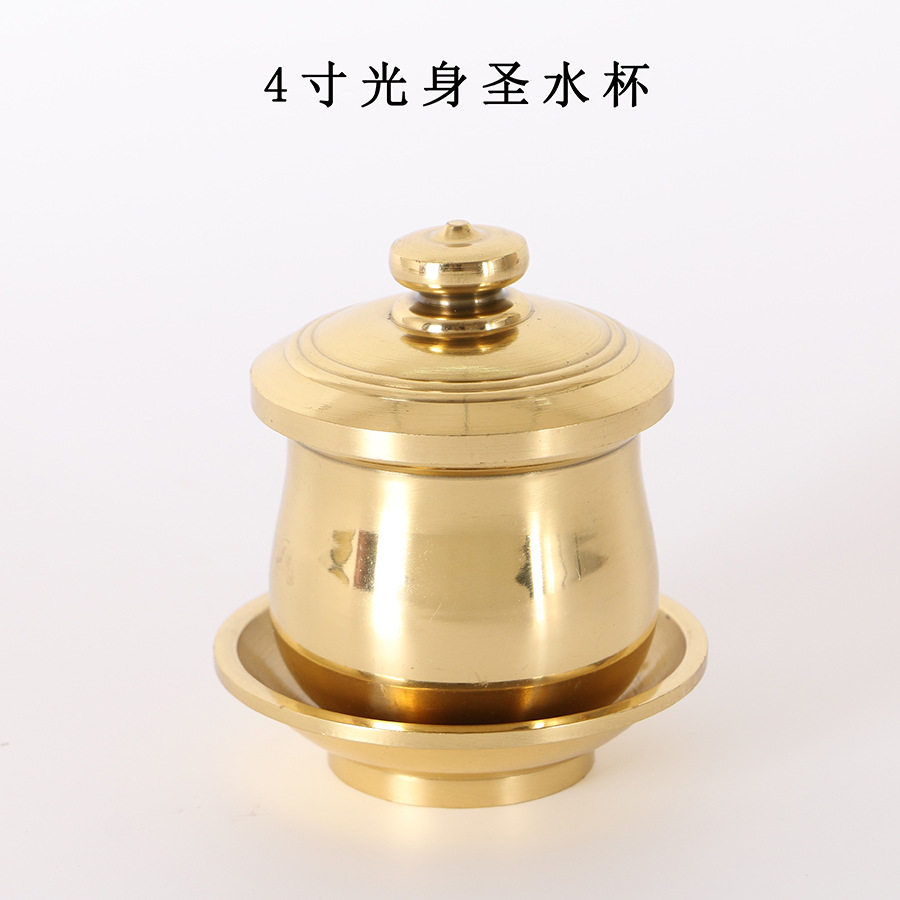 Pure copper strip cover lotus water supply cup brass fo front gondoCup buddha supplies Guanyin Bodhisattva water purification cup full copper wine glass