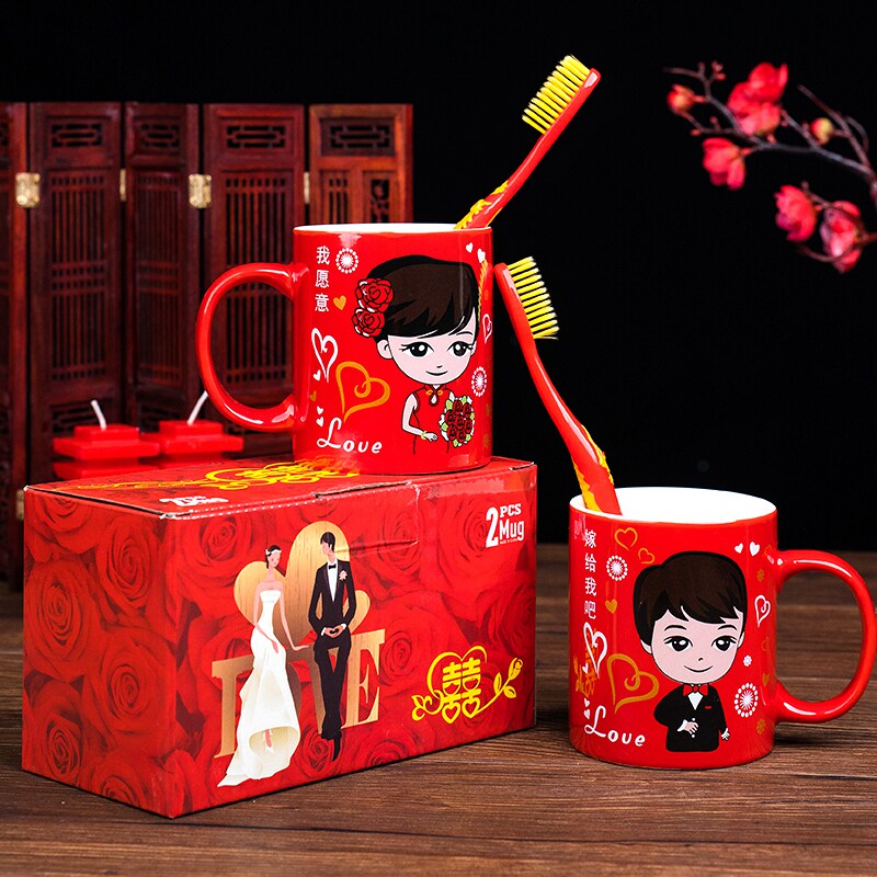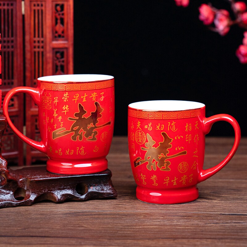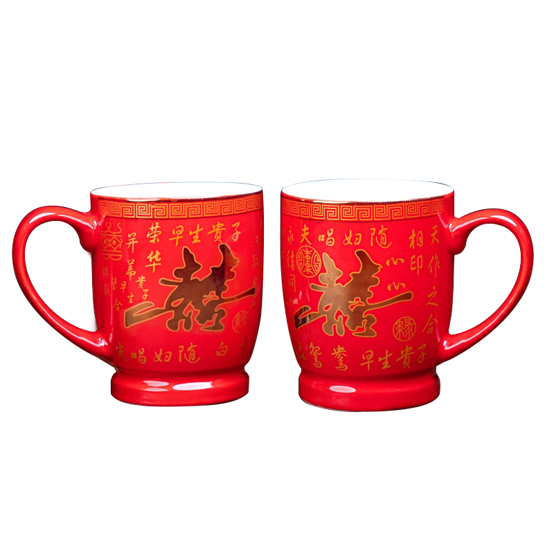 Wedding supplies ceramic red happy word wedding cup wedding drinking cup set wash cup festive couple pair