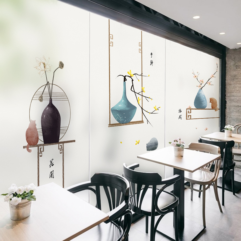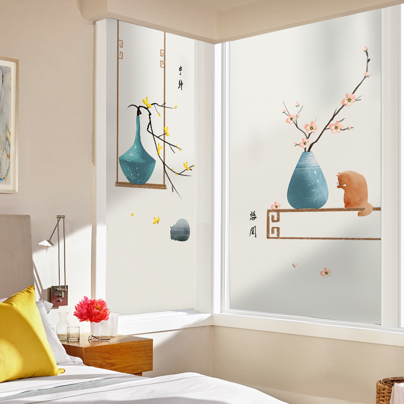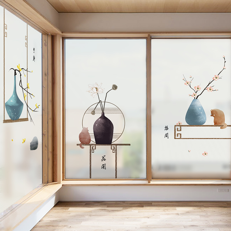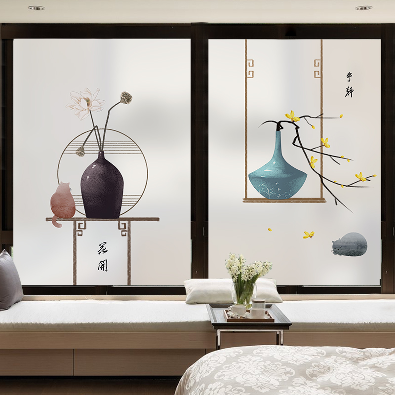 Chinese dining room elegant glass door sticker Creative tea room window sticker Bathroom anti-light window sticker Glass sticker