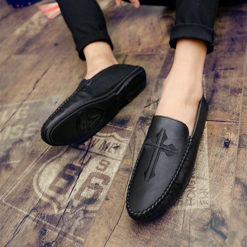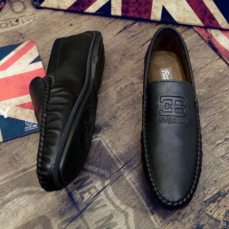 Net red with the same bean-bean shoes 2022 Summer version Korean version Flat bottom men's 100 hitch casual leather shoes fashion trendy men's shoe boomer shoes