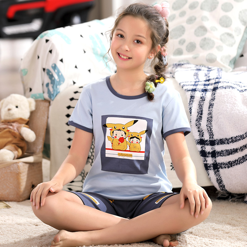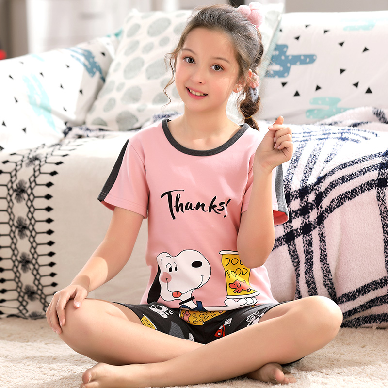 Summer teen pajamas for girls short-sleeved thin section pure cotton children 12-15 years old junior high school student girl suit