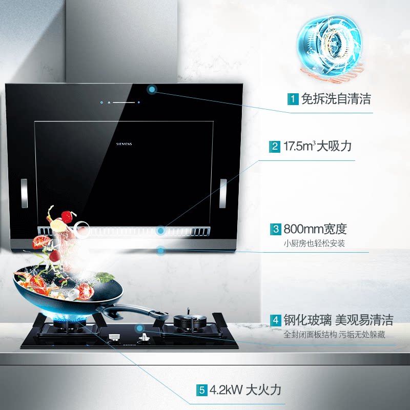 SIEMENS 8B0 7EA233 Side suction self-cleaning range hood Gas stove set Smoke stove set