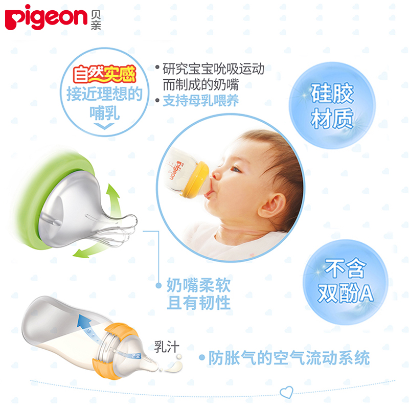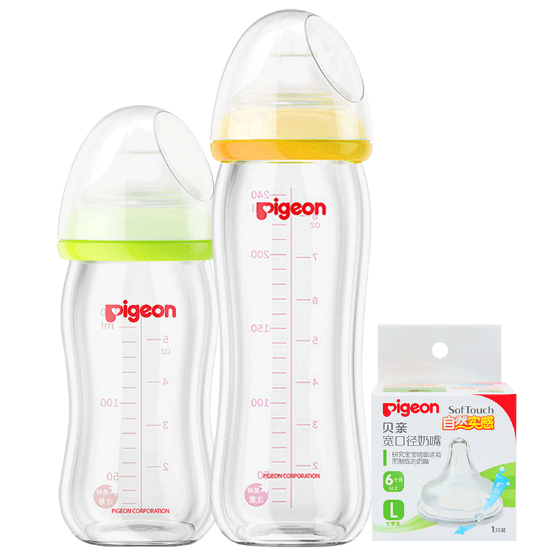 Pigeon feeding bottle combination set newborn glass feeding bottle baby anti flatulence with handle straw 160 240ML