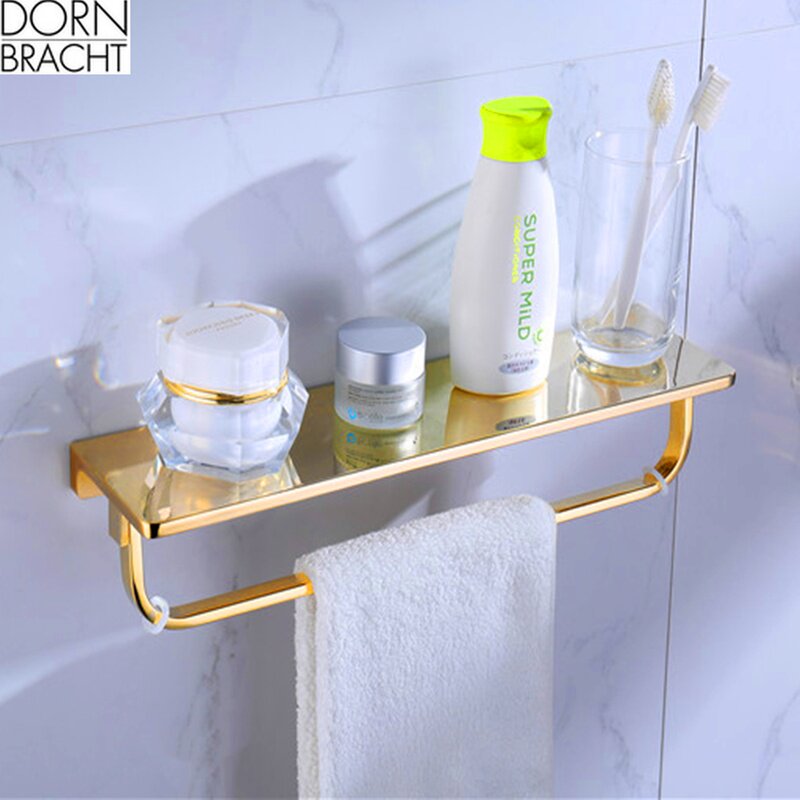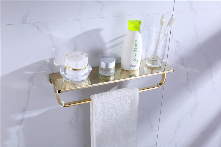 Exit All-copper Bathroom Modern Towel Rack Gold Multifunction Shelve Towel Rod dressing room Contained Shelf Wall-mounted