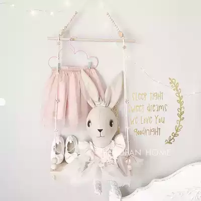 INS Nordic wooden bead swing hanger wall storage rack children's room doll decoration decoration finishing rack