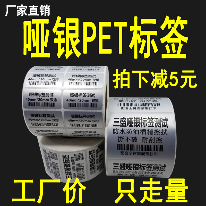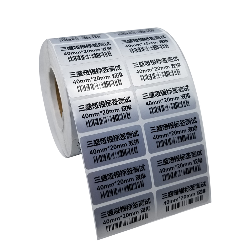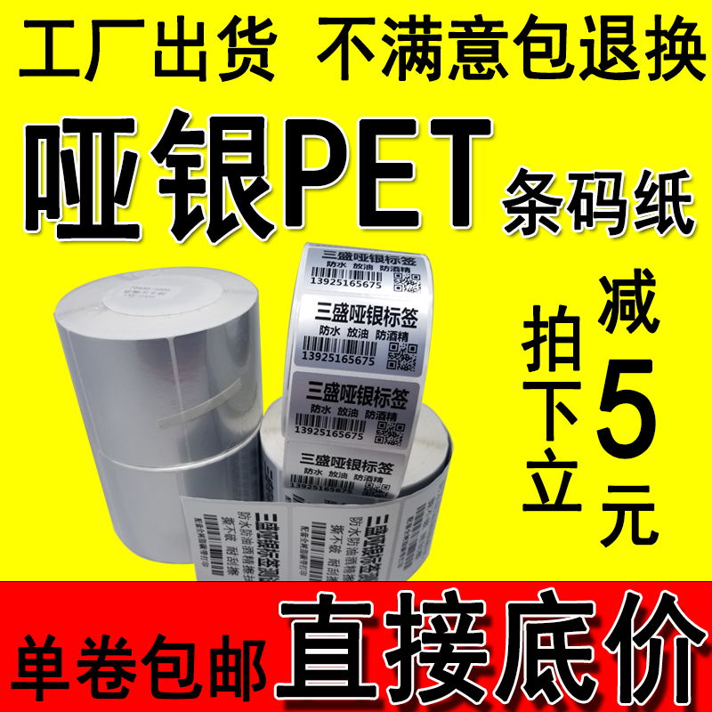 Asian silver self-adhesive sticker dumb silver barcode pet printing paper 10*15*20*25*30*35*40*5060 custom