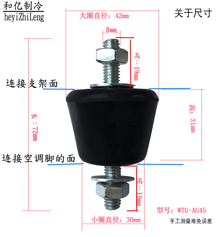Stainless steel 304 material 4 sets (applicable 1-3P) applicable 1-3PAG45 (galvanized material) 4 sets of shock pads can be 1 point 4 non-slip export type shock absorber pad (carton packaging