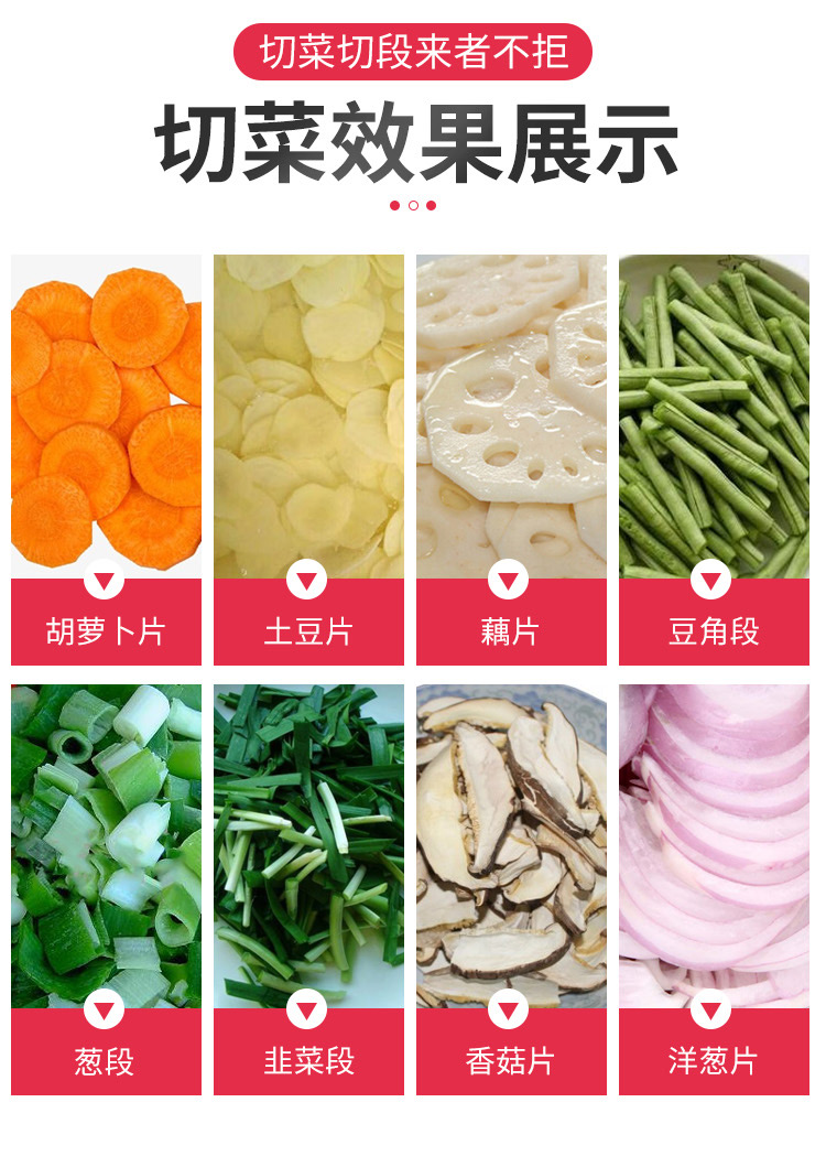 1 Special machine for cutting spring onions (spring onions)2 All-steel double frequency conversion 3 Luxury all-steel mobile wheel 4 All-function All