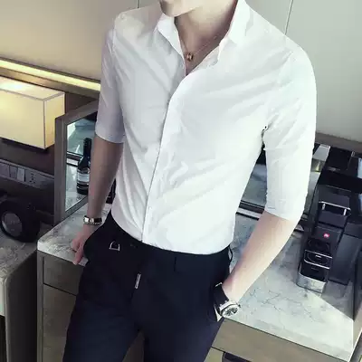 White shirt men's tide seven-point sleeve Korean version of slim business Joker handsome shirt men's middle sleeve solid color inch clothes
