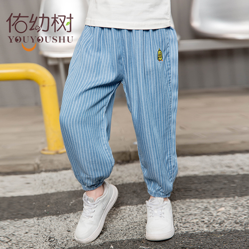Boys casual pants children's Tencel pants summer loose version 2023 thin section boy summer lantern anti-mosquito trousers
