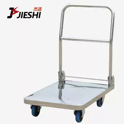 Jieshi stainless steel flatbed car folding trolley mute small pull car four wheel truck 304 stainless steel 304