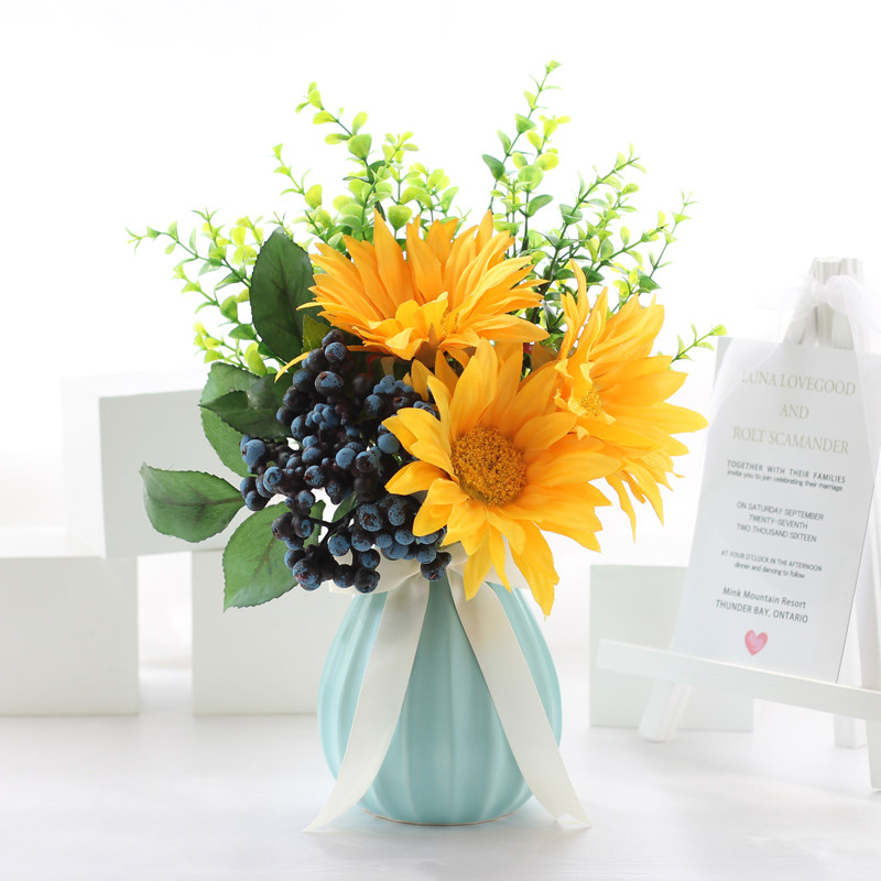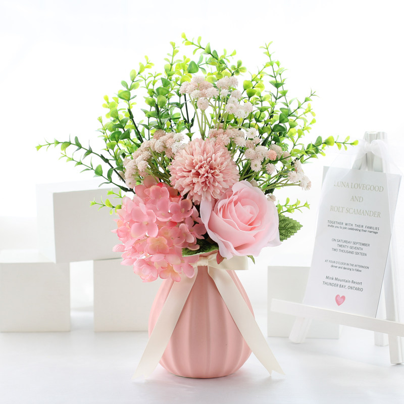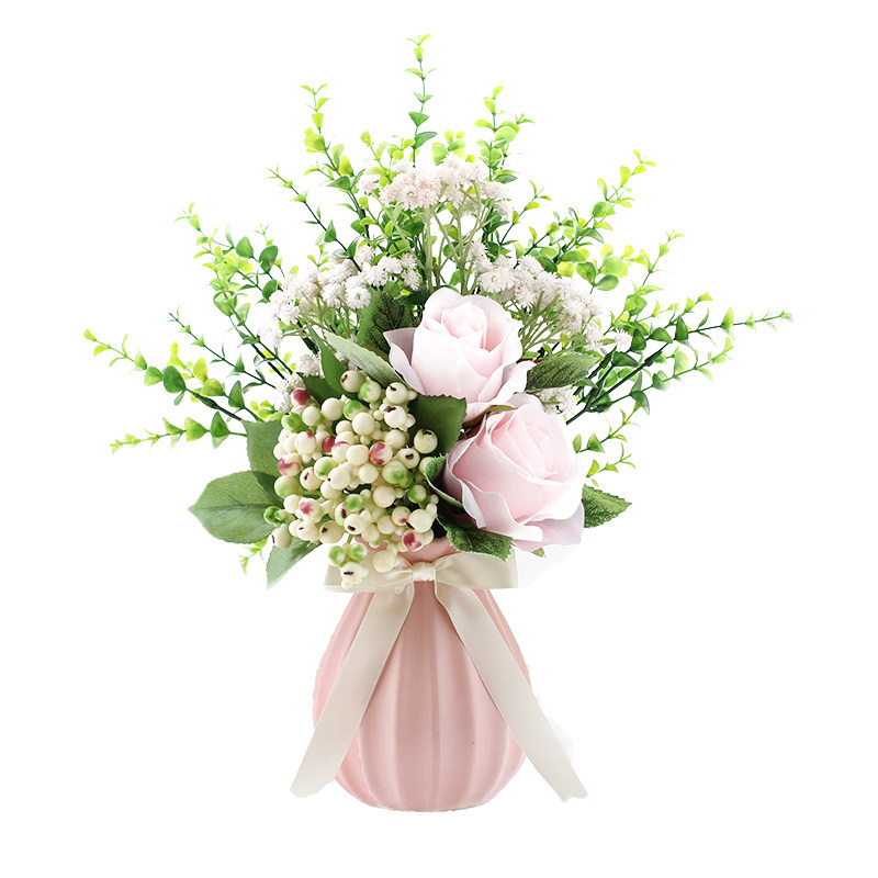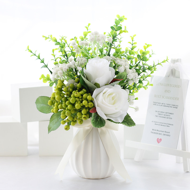 Emulated flower suit fake flower pulp fruit embroidered ball rose home living room dining room table floral decoration pendulum decorated with small fresher vase