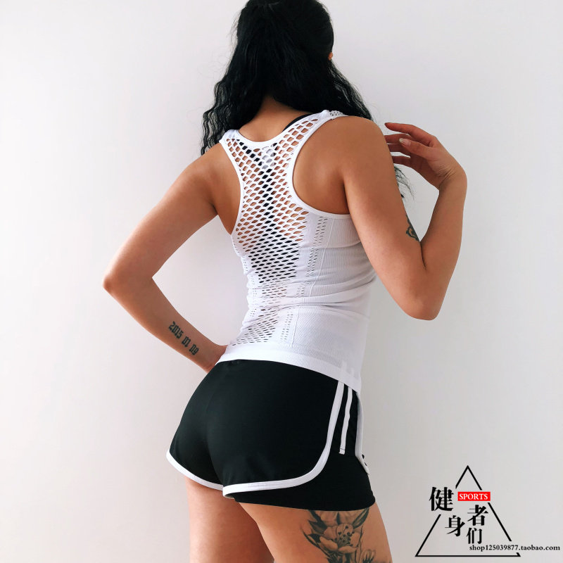 Yoga fitness quick-drying top sports mesh halter beauty back Sexy tight fitting I-shaped vest for women