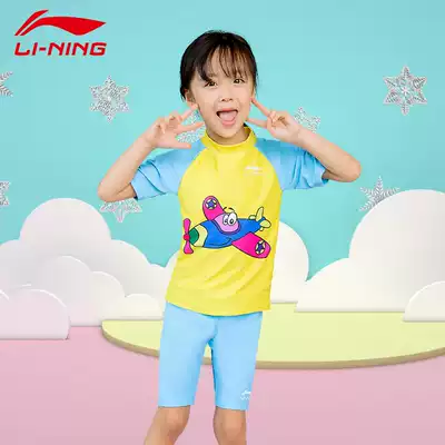 Li Ning children's swimsuit Girls ' swimsuit two-piece suit Little girl girl swimsuit Medium and large children's professional hot spring swimsuit