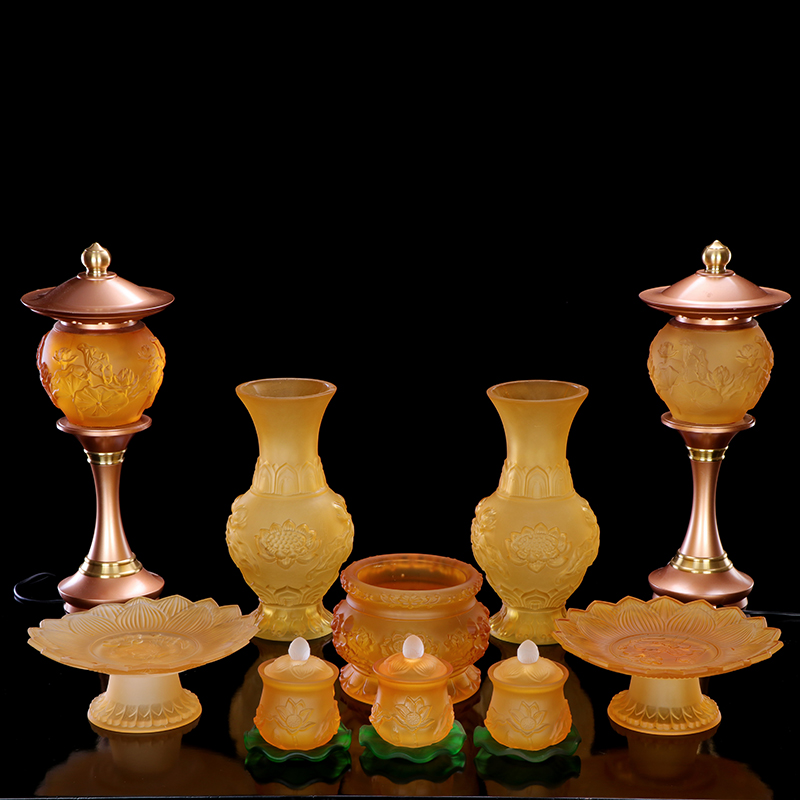 Xi Manti glazed vase swing piece Living room flower arrangement for Buddha reliefs Lotus Guanyin Pure bottle glass vase pair