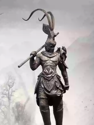 Gloomy ebony red tsubaki Qi Tian Da Sheng wood carving craft gift decoration living room entrance partition character custom root carving decoration