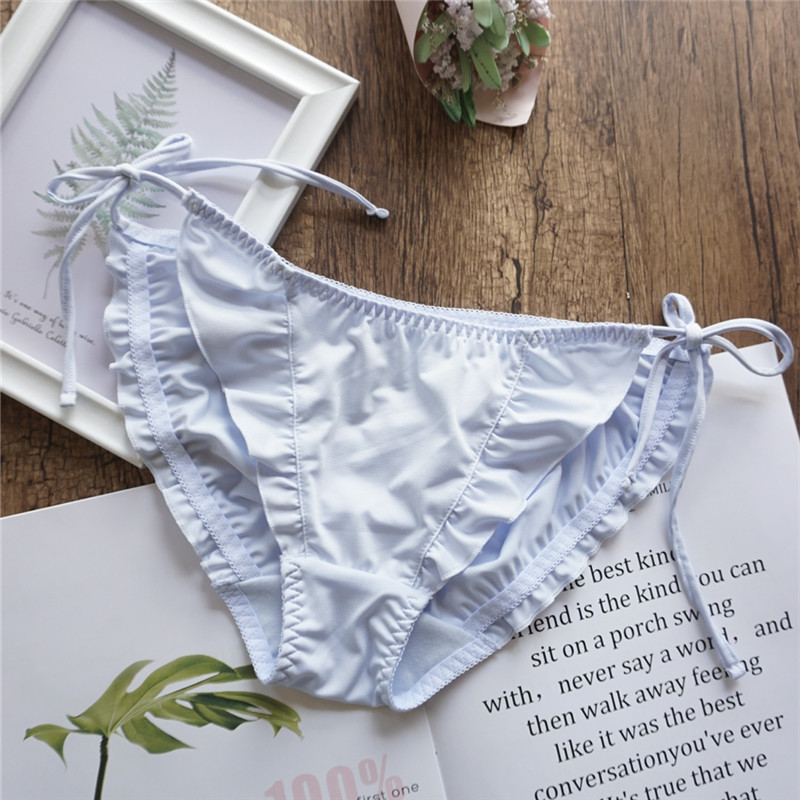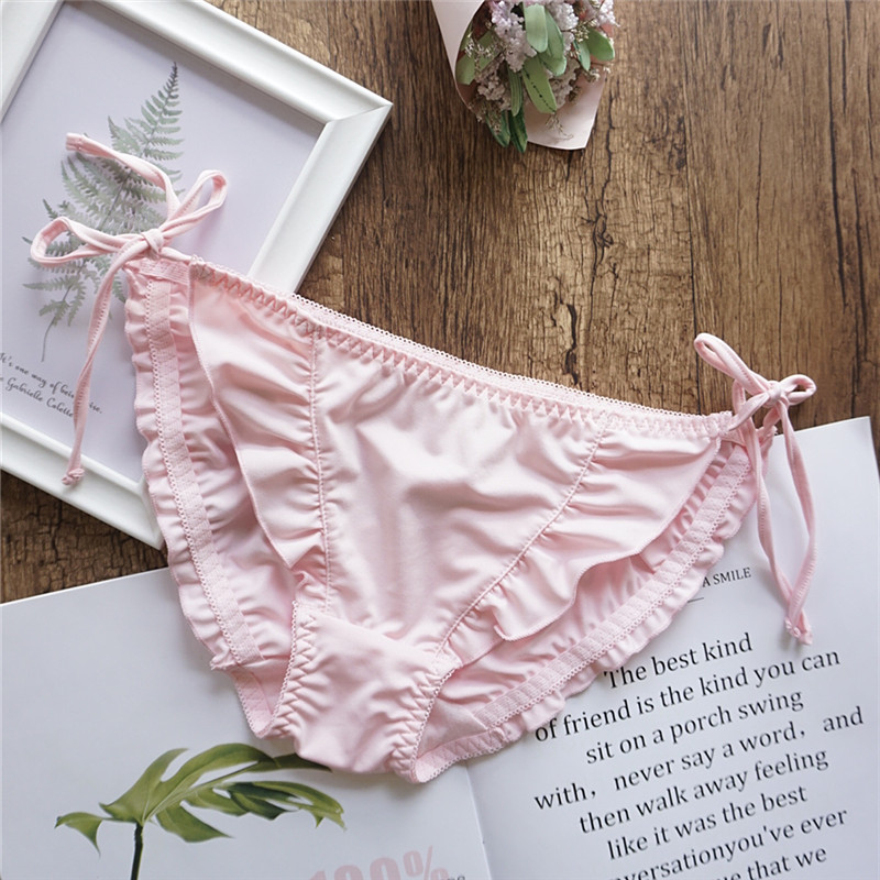 Amnesia Junior Department of Teenage Girl Macaron Color Ensemble Low Waist Laces Milk Silk Briefs Lady Triangle Pants