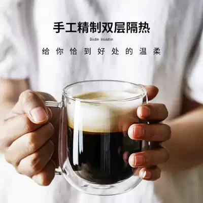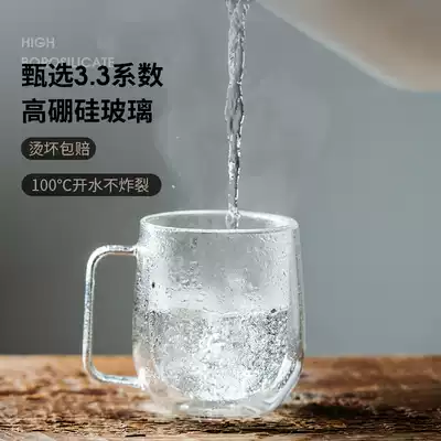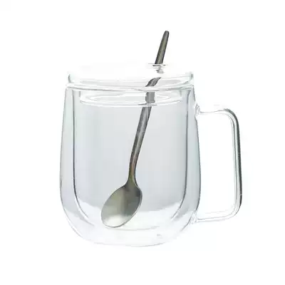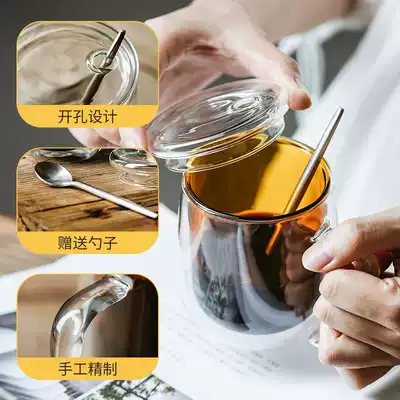 Double insulated glass cup drinking water coffee cup creative transparent band cover tea cup household water cup mouth Cup