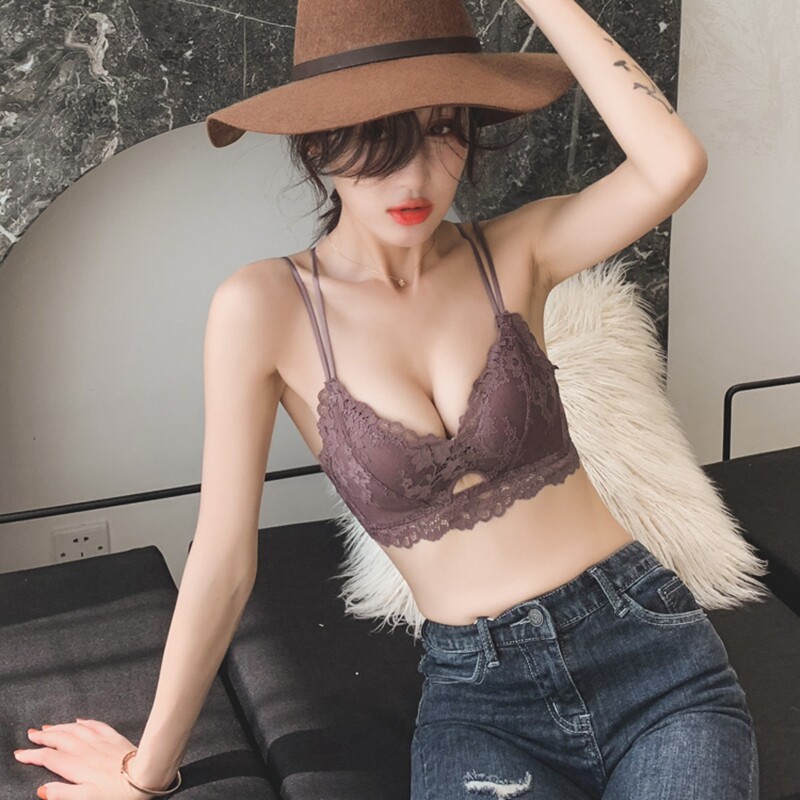 French underwear women without rims thin section ultra-thin gathered on the small chest incognito beautiful back sexy lace small cute suit
