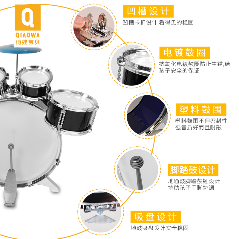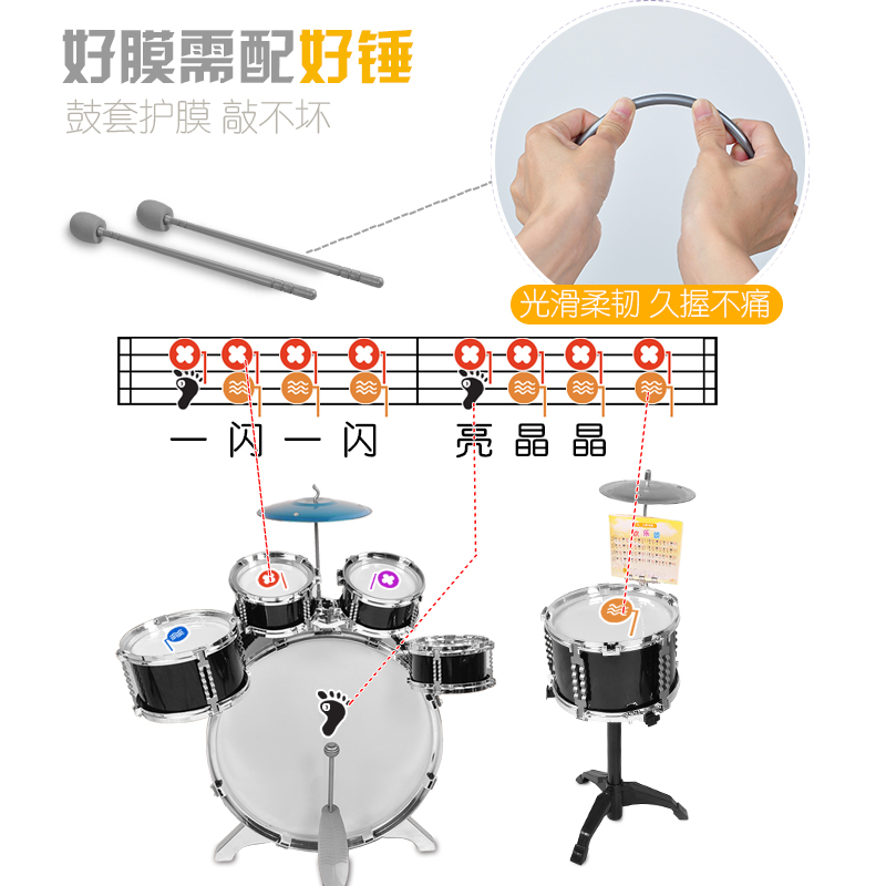 Pretty baby children's drum set toy Beginner drum boy Beating drum Musical instrument 3-6 years old Large jazz drum