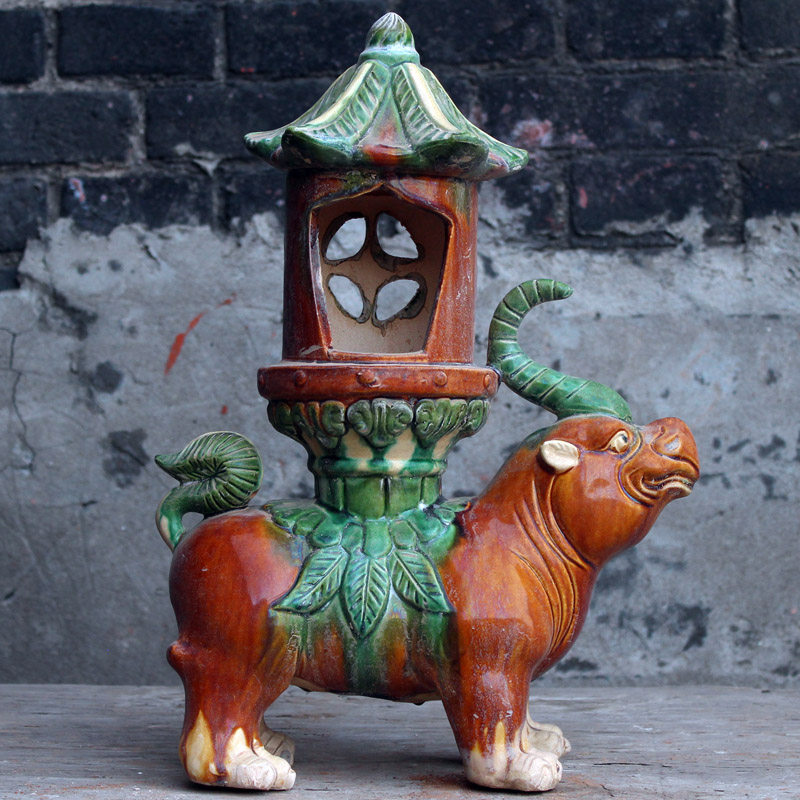 Tang 3color ceramic lampstand antique home piece bullish lamp station craftsmanship gift creative
