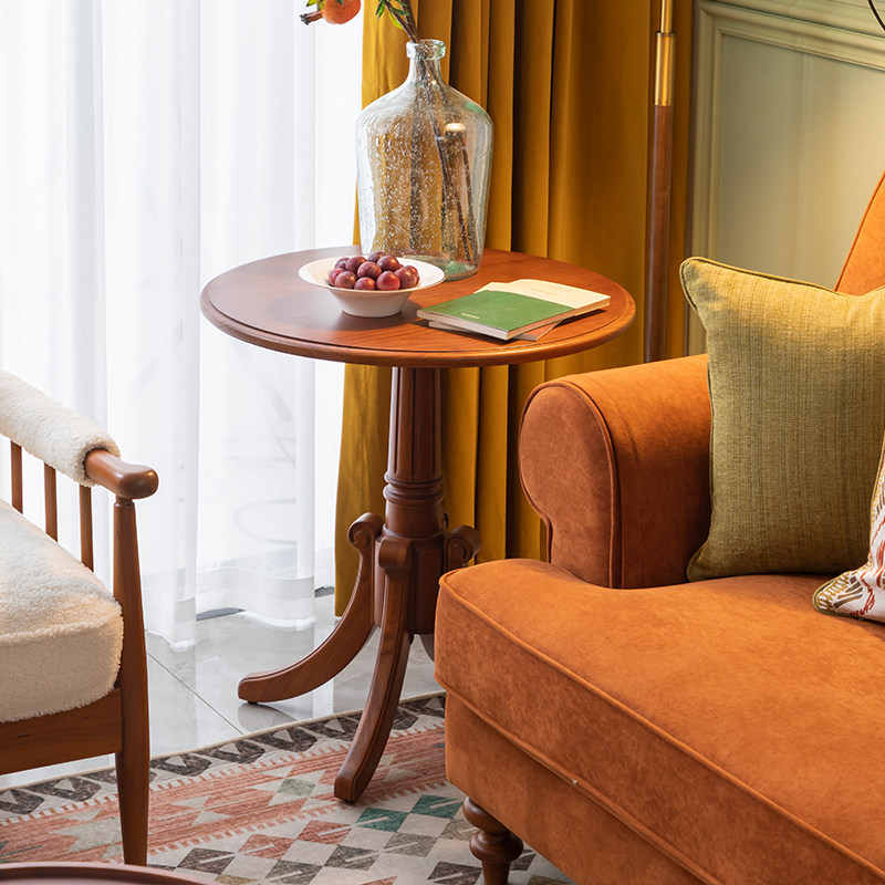 And year Mejia American angle Several solid wood round side several balconies small round table minimalist light extravagant living room sofa small side table-Taobao