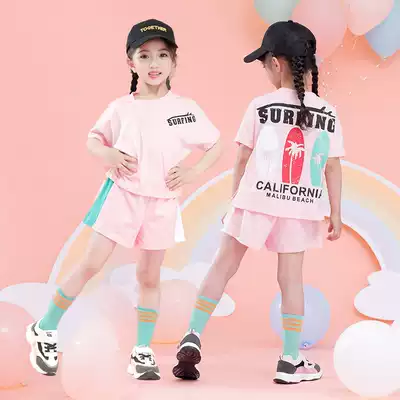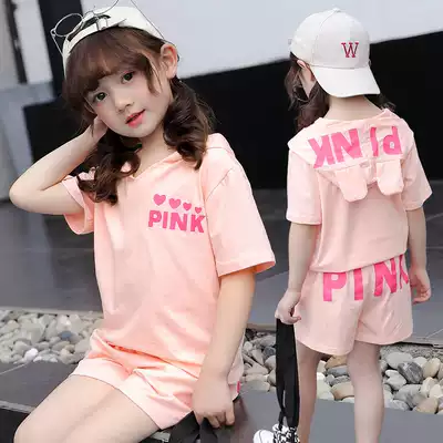 2021 summer new girls ' suit summer Korean Western style casual pullover short-sleeved T-shirt middle and large children's two-piece suit