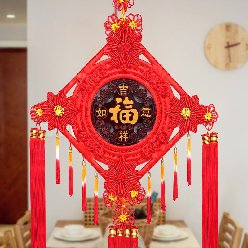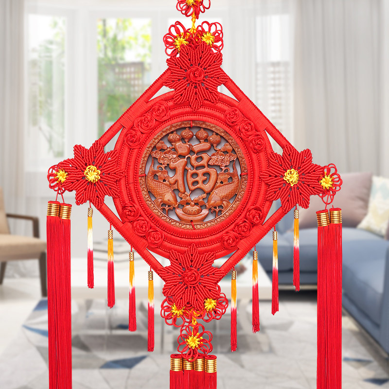 Panton Upscale Peach Wood Fu Characters China Knot Accessories Living Room big name Merchants New residence Qiao relocating Xuan Guan Background Wall New Year