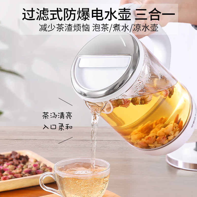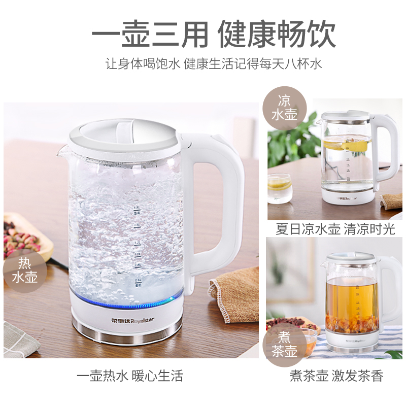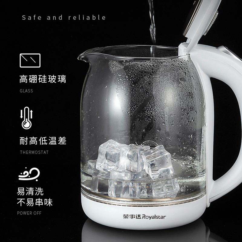 Rongshida electric kettle kettle household automatic power-off transparent high borosilicate glass quick-cooking kettle health kettle