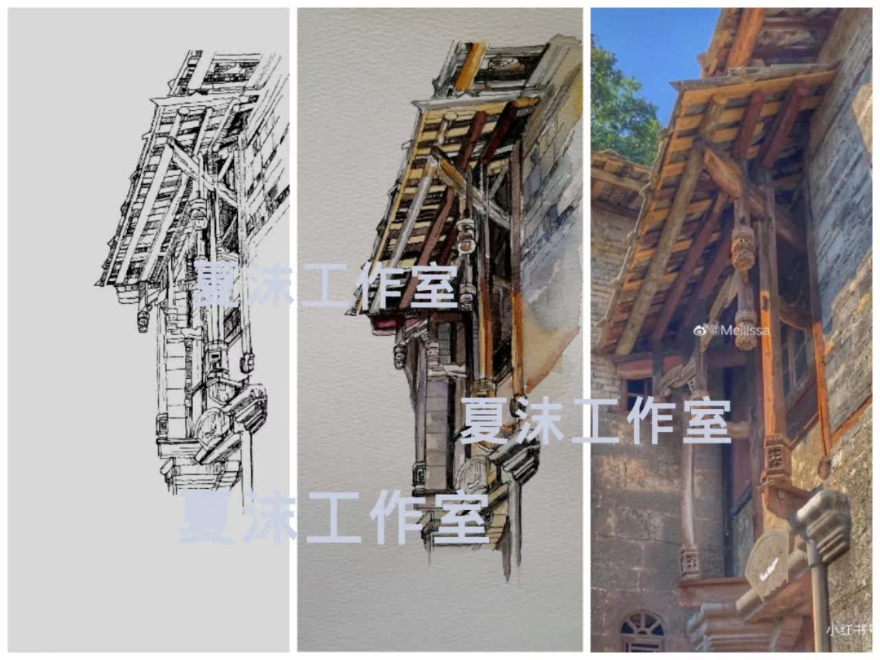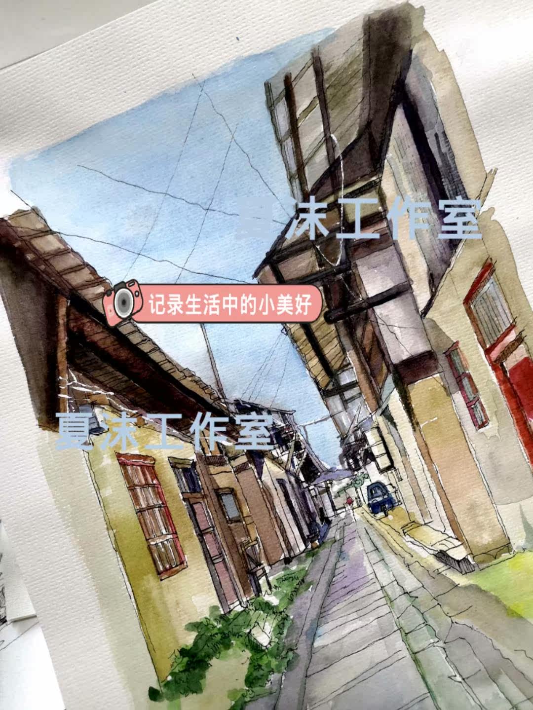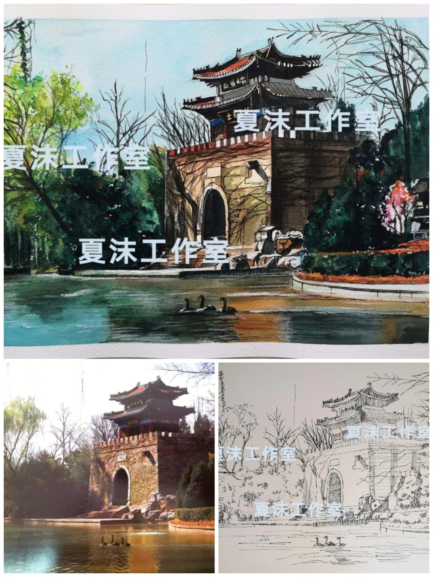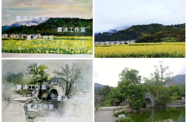 Painting watercolor landscape architecture pen pastel hair drawing custom line drawing colored gouache painting photo turn to hand painting landscape
