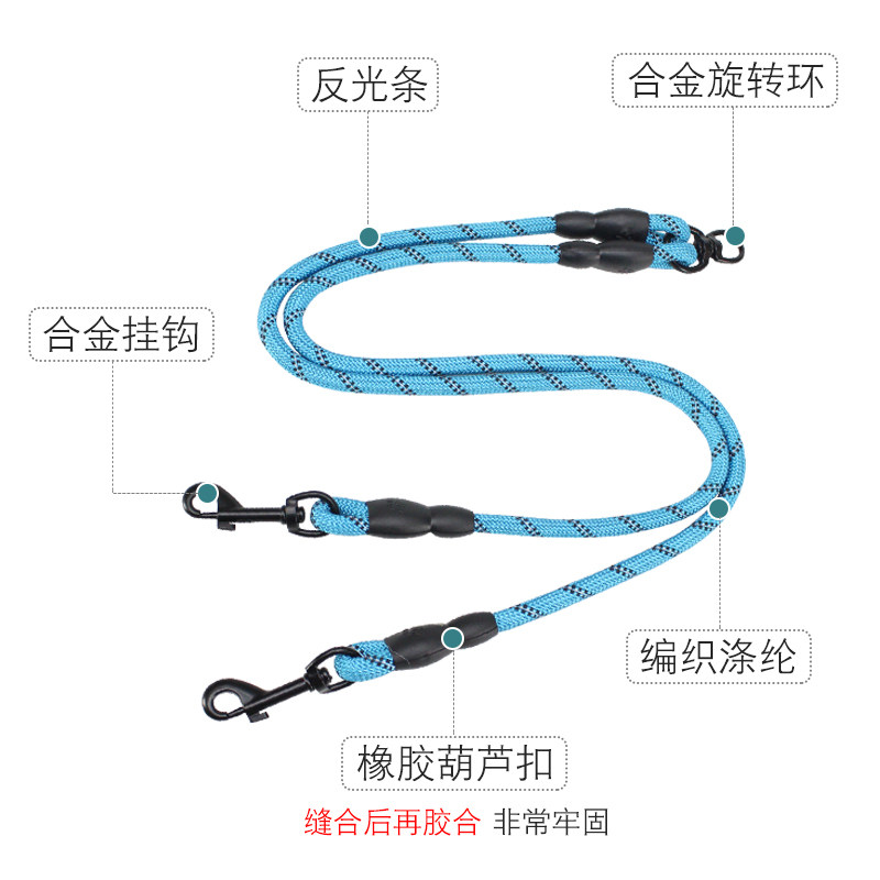 Dog traction rope walking dog rope Medium Double dog chain Twin Head Traction One tow Two dogs Two Pet Supplies