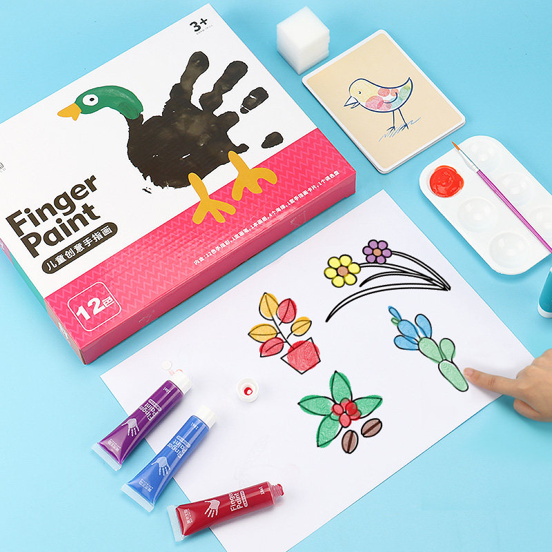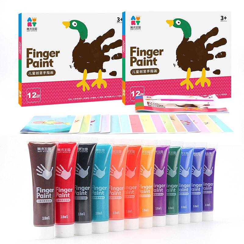 12-color creative finger painting 12-color washable pigments 2 brush color palettes 24-color washable pigments 2 brush color palettes