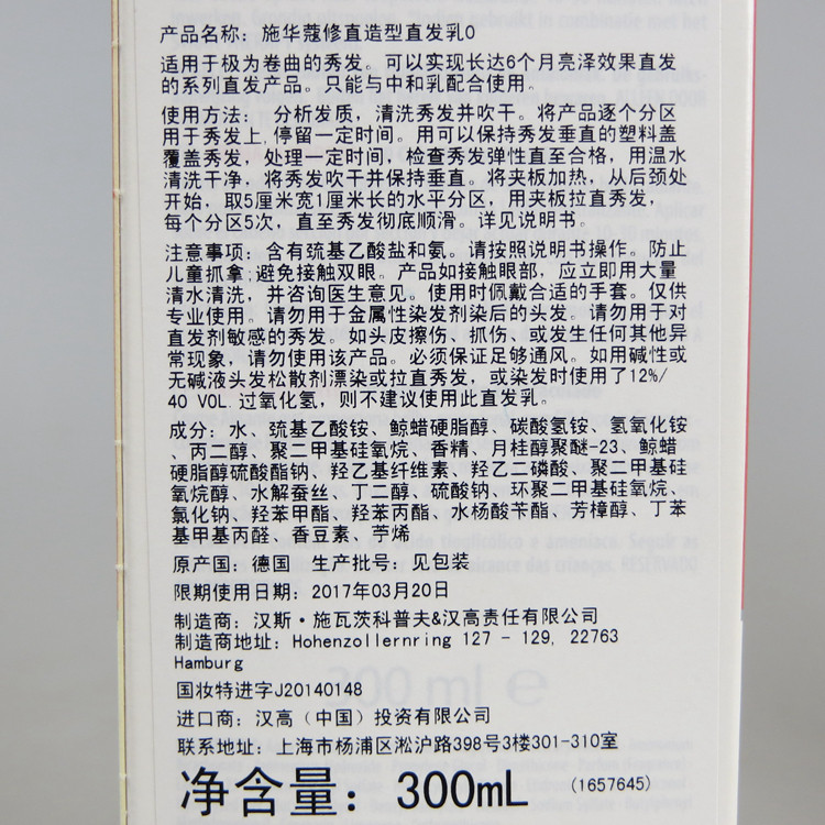 Schwarzkopf straightening styling straight hair cream No. 0 straight hair cream straightening cream smooth hot perm softener perm cream