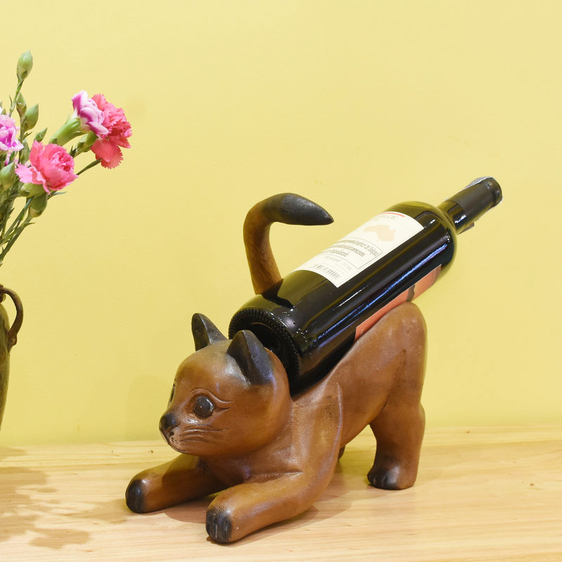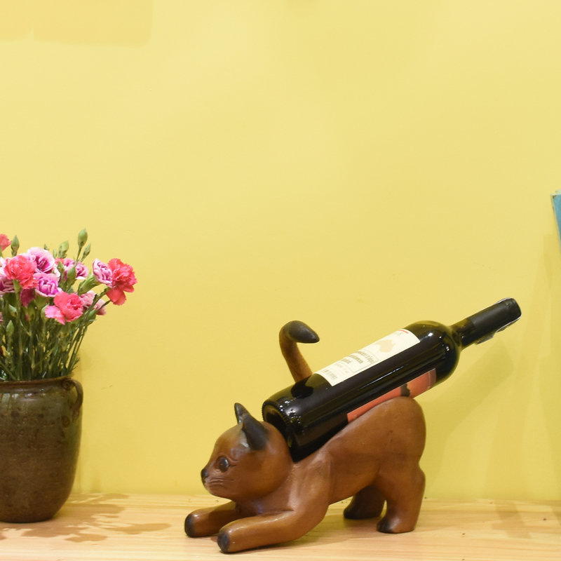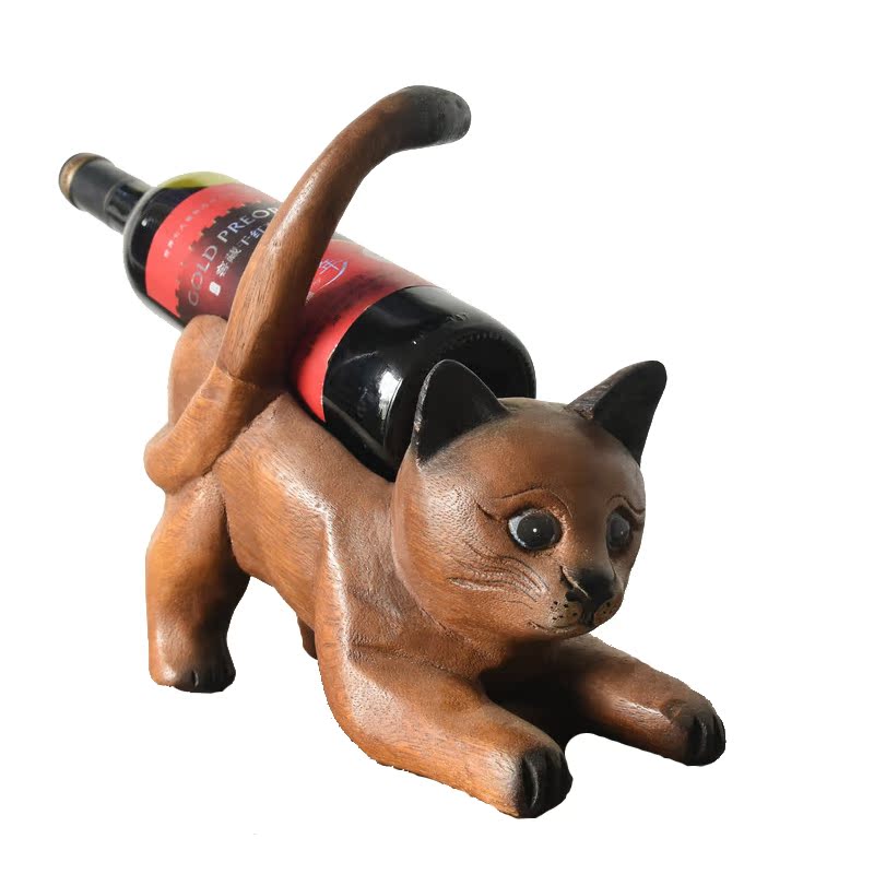 Thailand solid wood creative red wine rack wooden kitten wine display rack living room dining room wine cabinet decoration ornaments