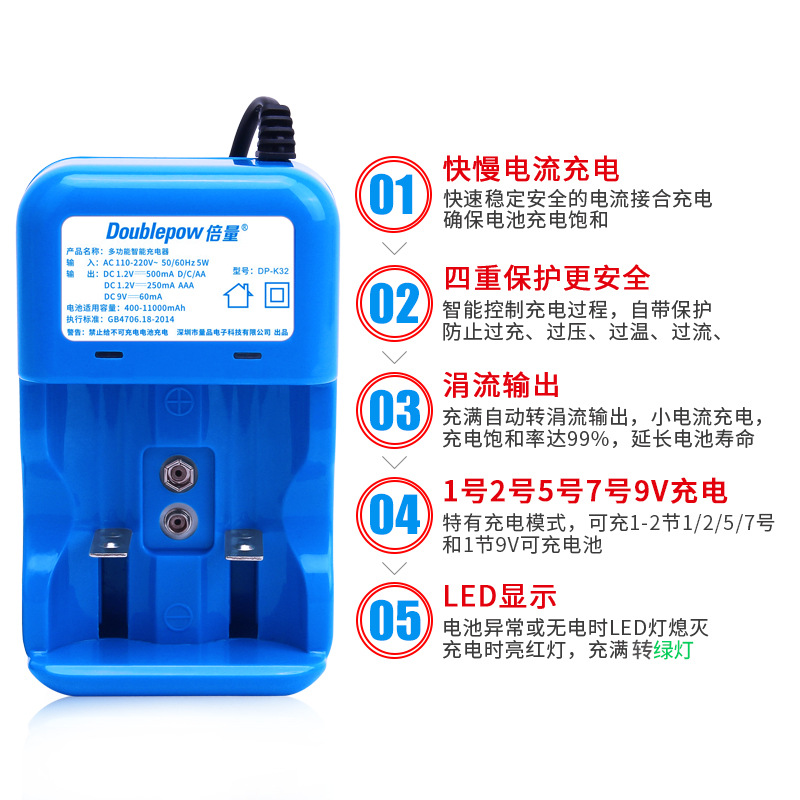 Doubling Charger 2 Trough Fast Intelligent rechargeable No. 1 D Type 2 C Type 5 Number 7 No. 9V Battery turn light-Taobao