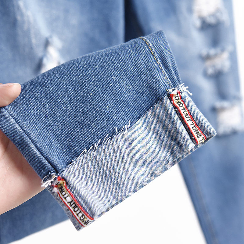 Ripped jeans women's loose straight wide legs high waist thin all-round nine-point summer thin section small daddy pants