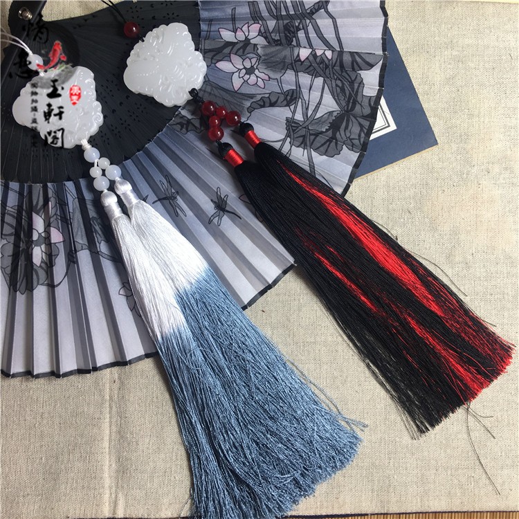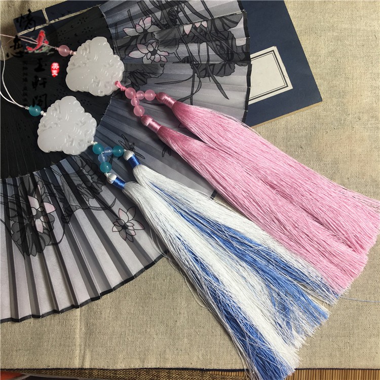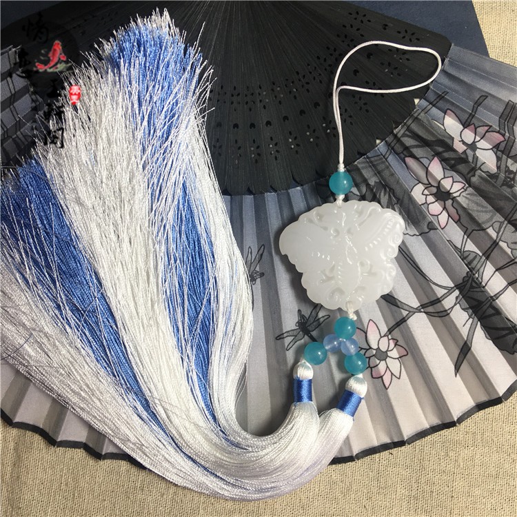 Ancient clothing for men and women light Qing ancient style white jade Hanfu accessories Butterfly jade pendant tassel waist pendant pendant fan pendant