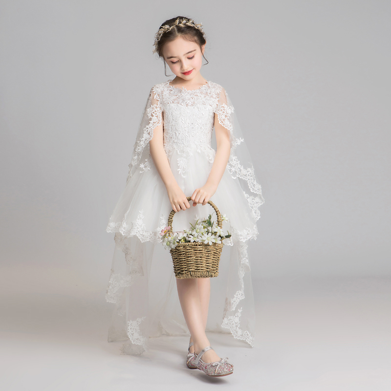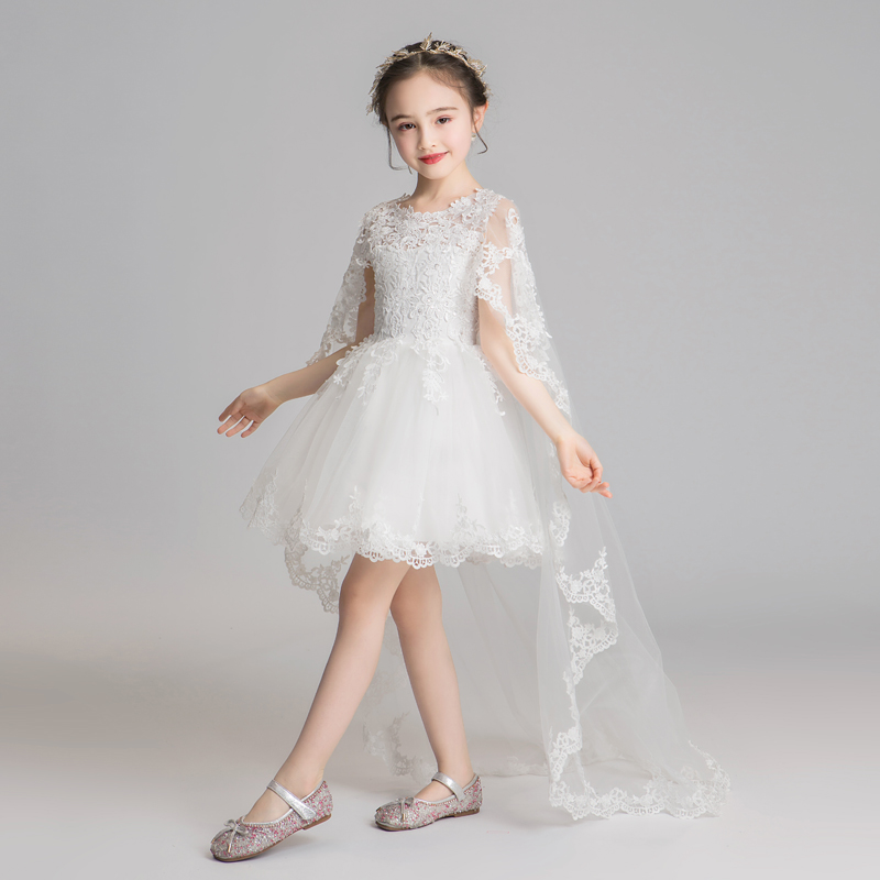 Children's Gown Princess Dress Trailing Girl's Piano Performance Suit Little Girl Flowers Child Wedding Birthday Pompon Wedding Dress Dress