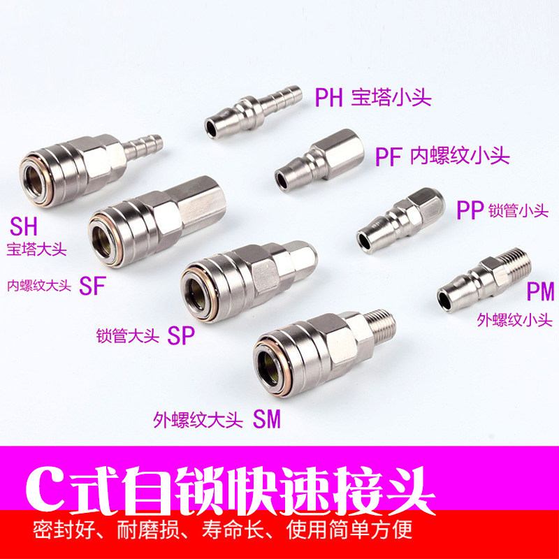 C-style self-locking quick connector pneumatic accessories air pump quick-connect trachea intubation type high-pressure quick-plug pagoda male and female head